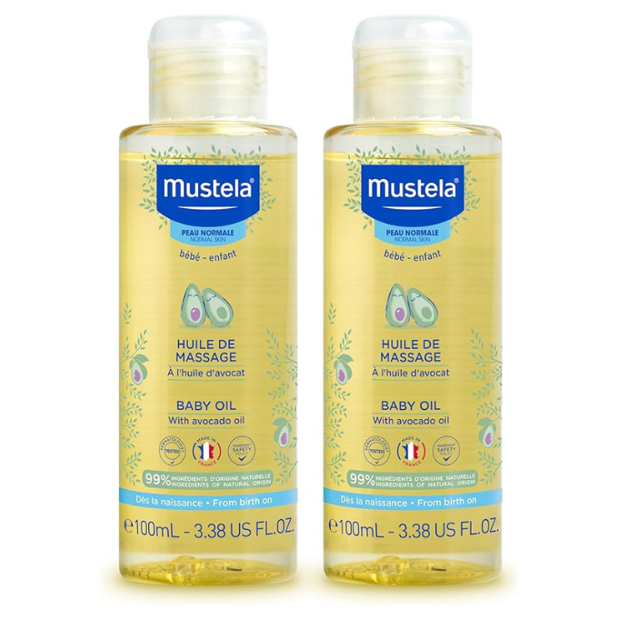 Mustela Baby Oil – Moisturizing Oil for Massage – with Natural Avocado fortified with Vitamin B5 – Pack of 2